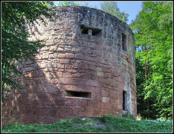 Der massive Rundturm hat einen Durchmesser von 14 Meter, und eine Mauerstärke von 3,20 Meter.