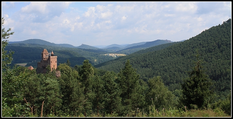 Blick von Kleinfrankreich zur Burg Berwartstein und in den Wasgau.