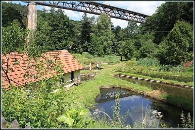 Etwas unterhalb liegen die Fischteiche der Forellenzucht Schneider.