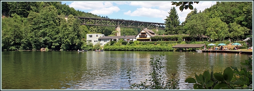 Auf der Staumauer steht das ehemalige Jagdhaus der Industriellenfamilie Gienanth.
