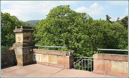 Auf halbem Weg in einer Haarnadelkurve am Bismarckplatz kann man auf einem Sandsteinfindling