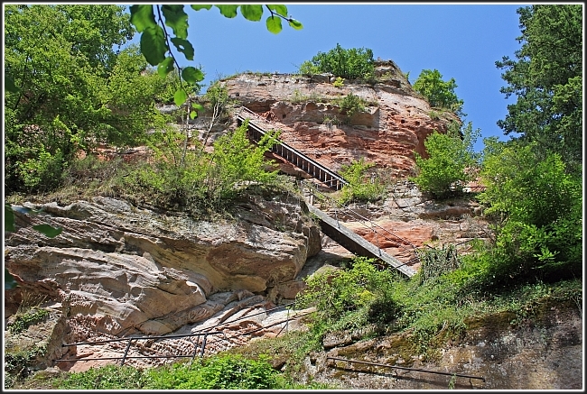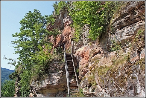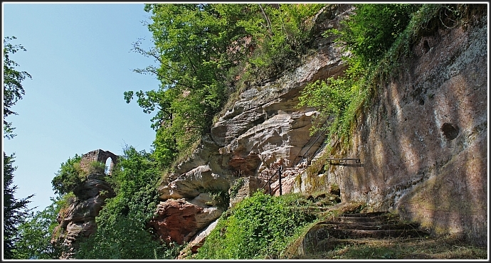...hoch über dem Katzental auf zwei über 40 Meter hohen Felsen erbaut.