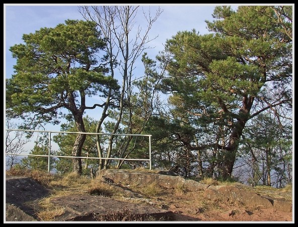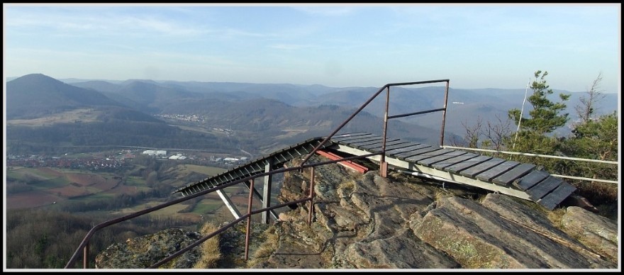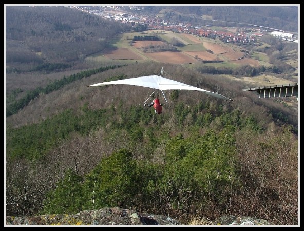 Der Pfälzer Drachen- und Gleitschirmflieger Club errichtete auf einem Felsplateau an der Westseite des Hohenberg eine Rampe.