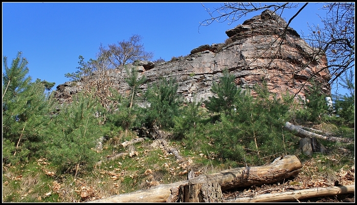 Etwa 1 km südöstlich steht sein großer Bruder, der "Große Hahnstein".