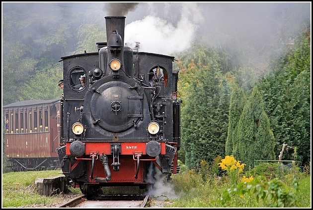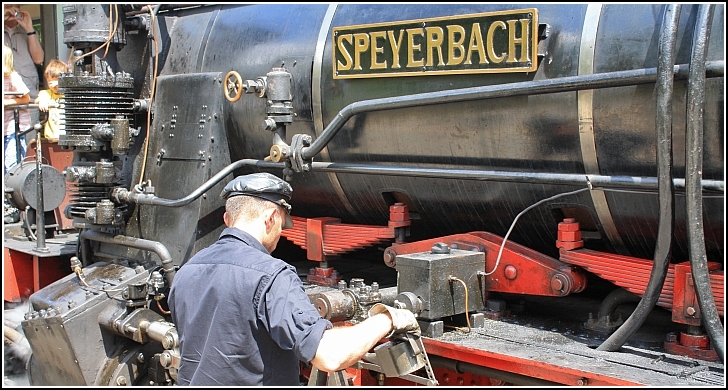 Gezogen werden die historischen Waggons meist von der "Speyerbach", sie wurde 1904 von der