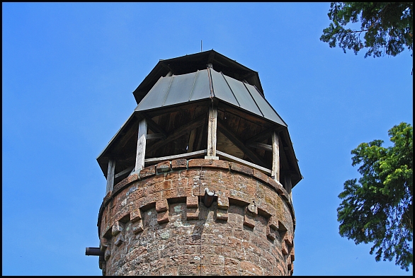 Um das Mauerwerk vor Wettereinflüssen zu schützen wurde dem Turm 1953 ein Dach aufgesetzt.