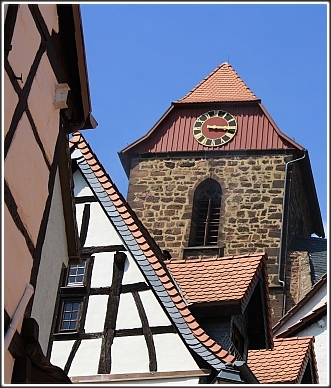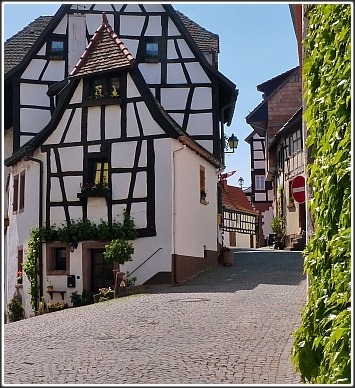 Durch gepflasterte Gassen, vorbei an den alten Fachwerkbauten,