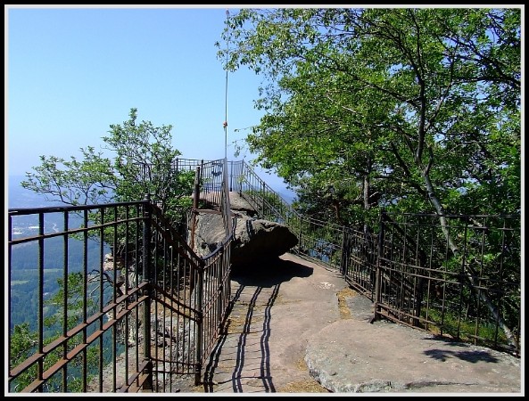 Auf einer gesicherten Aussichtsplattform hat man bei gutem Wetter einen grandiosen Fernblick.