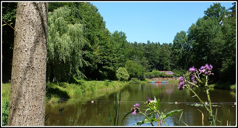 von dem es noch etwa 5 min. Fußweg zum Paddelweiher sind.