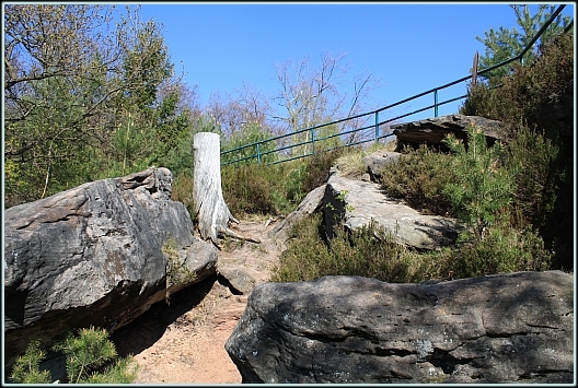 Kürzester Weg zum Rotenstein ist von Hinterweidenthal der "grün/gelben Markierung" folgend.
