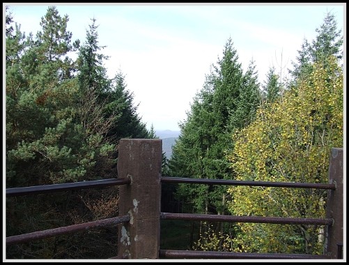 Die Aussicht ist durch die Baumkronen zum größten Teil versperrt.