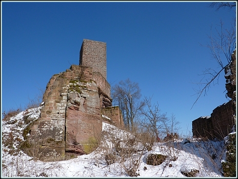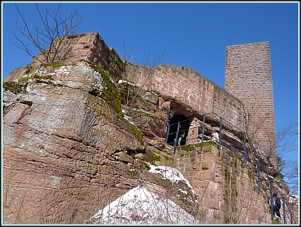 Anfahrt: Von Annweiler die Trifelsstraße bis zum Parkplatz Windhof , dann mit der Wegemarkierung "4" hinauf zur Burg, die jederzeit frei zugänglich ist. (nicht der Turm!)