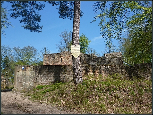 | | Der Wohnturm hatte wahrscheinlich fünf Stockwerke und ein schiefergedecktes Dach. Vom Turm aus hatte man Sichtkontakt zum "Kloster Klingenmünster". |