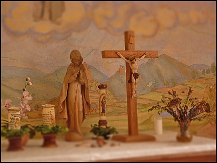 zur Kapelle, um die heilige Gertrud, die Schutzpatronin der Gärtner und der Reisenden zu verehren.