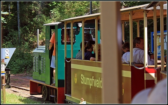 Die Bahnstrecke führt 3,5 km durch den Stumpfwald vom Bahnhof Eiswoog bis Ramsen West.